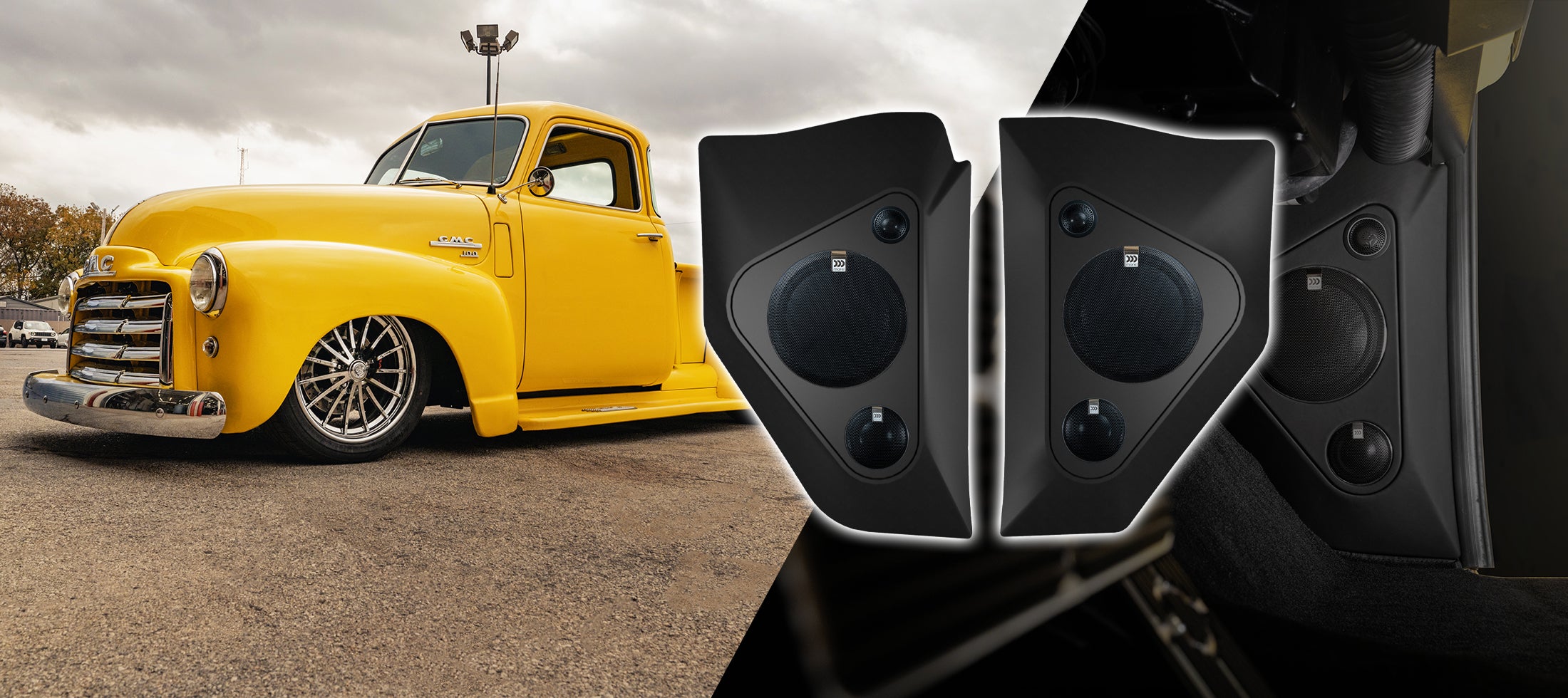 Upgrade your 47-55 Chevy/GMC truck's audio with style and efficiency! Our sleek, ultra-thin kick panels, equipped with Morel's Virtus Nano Carbon shallow-mount speakers, offer powerful sound in a compact design. At just 2.2" thick, you get top-notch sound quality while conserving valuable space.